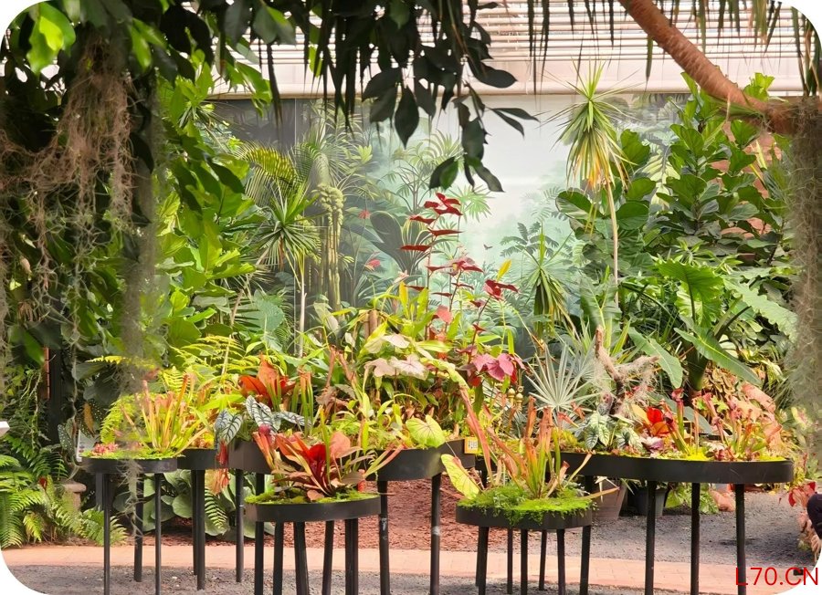 除了室外的郁金香花海,4000平方米的热植园同样令人流连忘返。园内打造了雨林、蝴蝶生态、地中海、食虫植物、多肉、水生等景观,汇聚了从热带雨林到沙漠绿洲的七大特色植物群落,一步一景遍历微型地球。