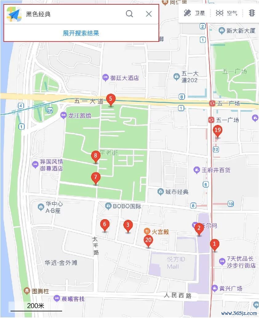 比如当你站在五一广场想吃一份黑色经典臭豆腐,搜索地图会发现,自己早就被十几家黑色经典包围。