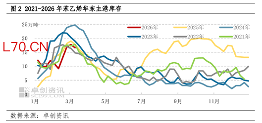 若地缘冲突缓和,地缘风险溢价将快速回吐,原油带动苯乙烯回吐溢价,市场将回归基本面定价。苯乙烯供应端来看,原料问题解决后,前期降负荷装置有望提负荷运行,另外计划重启的京博思达睿、唐山旭阳装置也贡献部分产量,但3月整体产量或仍低于前期预测值。需求端来看,消费市场仍处于“金三银四”旺季,苯乙烯溢价回吐后,或重燃下游补货积极性;同时3月出口订单也需交付,华东主港去库节奏加快,基本面向好或限制苯乙烯价格跌幅。